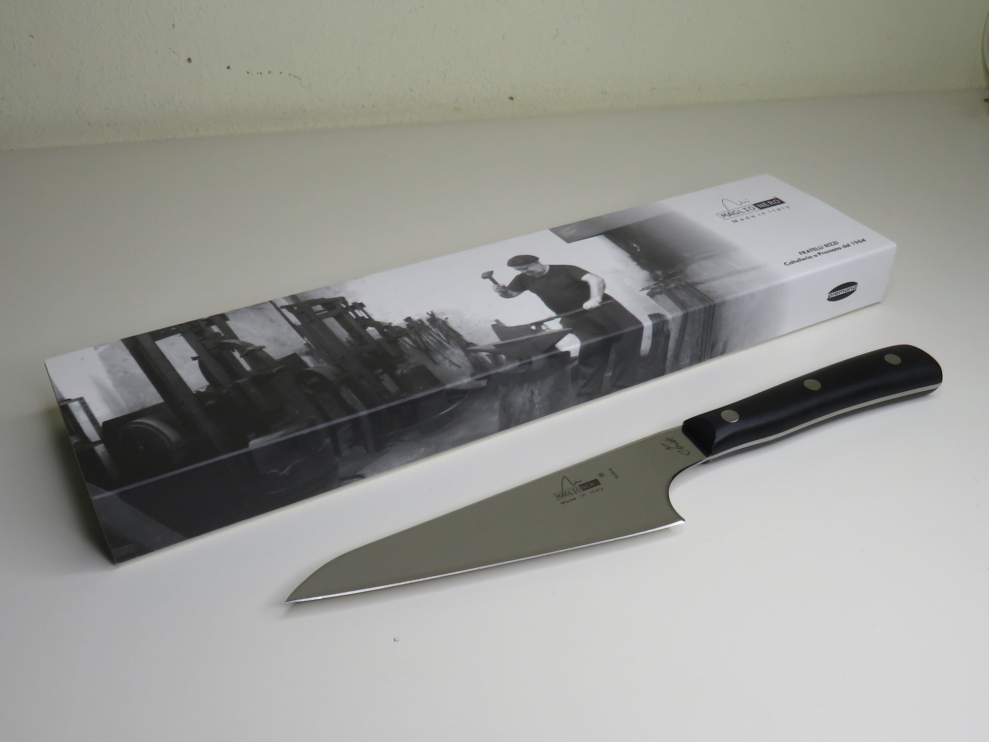 Nato dalla collaborazione tra l'azienda Maglio Nero e la chef stellata Iside De Cesare, questo coltello da cucina “utility“ lama 14 cm è, come suggerisce il nome, un coltello multiuso estremamente versatile e maneggevole. Si colloca a metà strada tra un piccolo coltello da verdura (o "spelucchino") e un coltello da chef più grande.